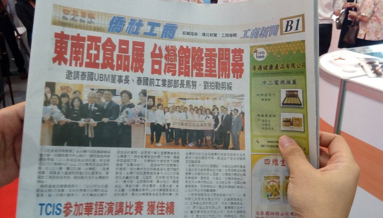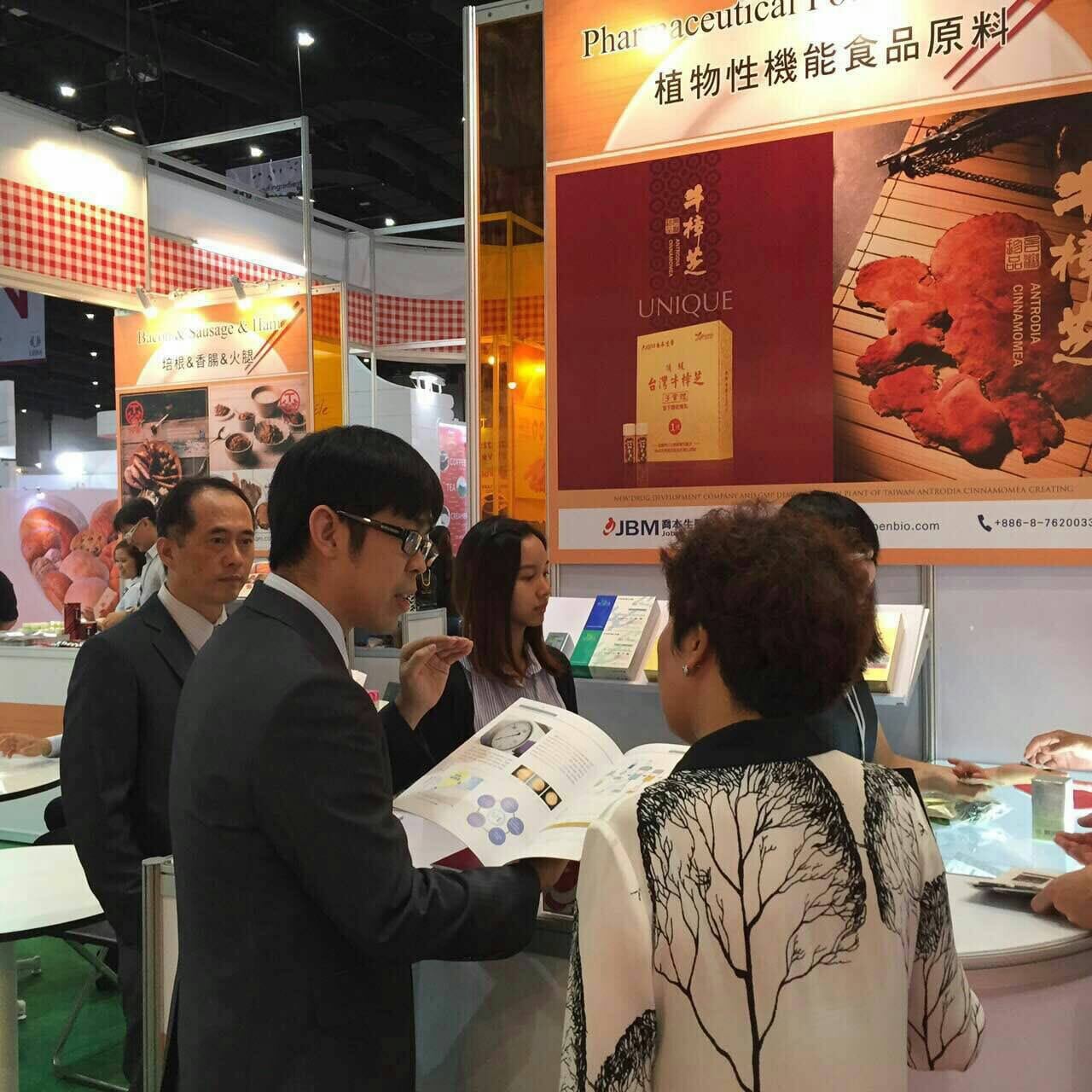 此次參加行政院農業委員會及財團法人中國生產力中心所執行的2015台灣菁英食 品海外滲透計畫。參展期間為9月9日~11日止,主要是由台灣食品相關廠商前往 泰國參與Fi-Asia展,此展提供原料找尋及分享最新專家技術平台,帶領相關產業 進入東南亞市場。也因,此展覽讓喬本牛樟芝打入國外市場獲取更多經銷商及代理商的青睞,也獲得 更多進一步合作機會進而開啟喬本生醫牛樟芝在東南亞知名度。