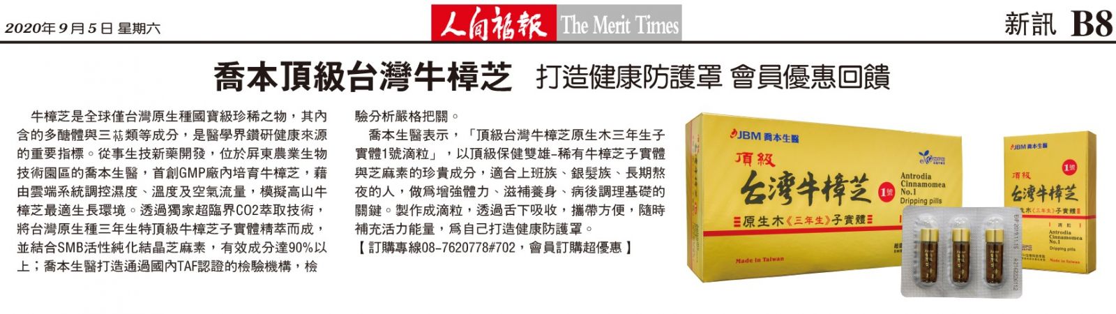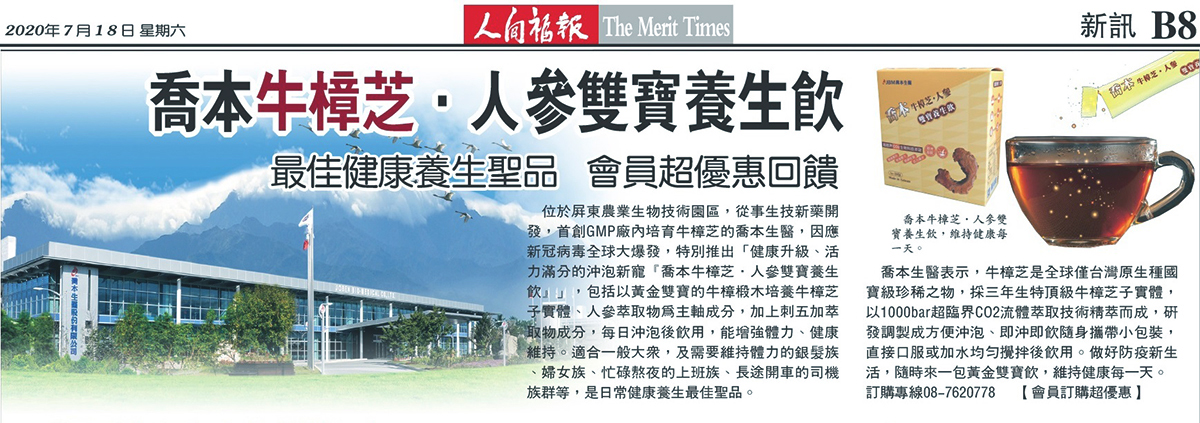 「人間福報」喬本頂級台灣牛樟芝 打造健康防護罩 會員優惠回饋