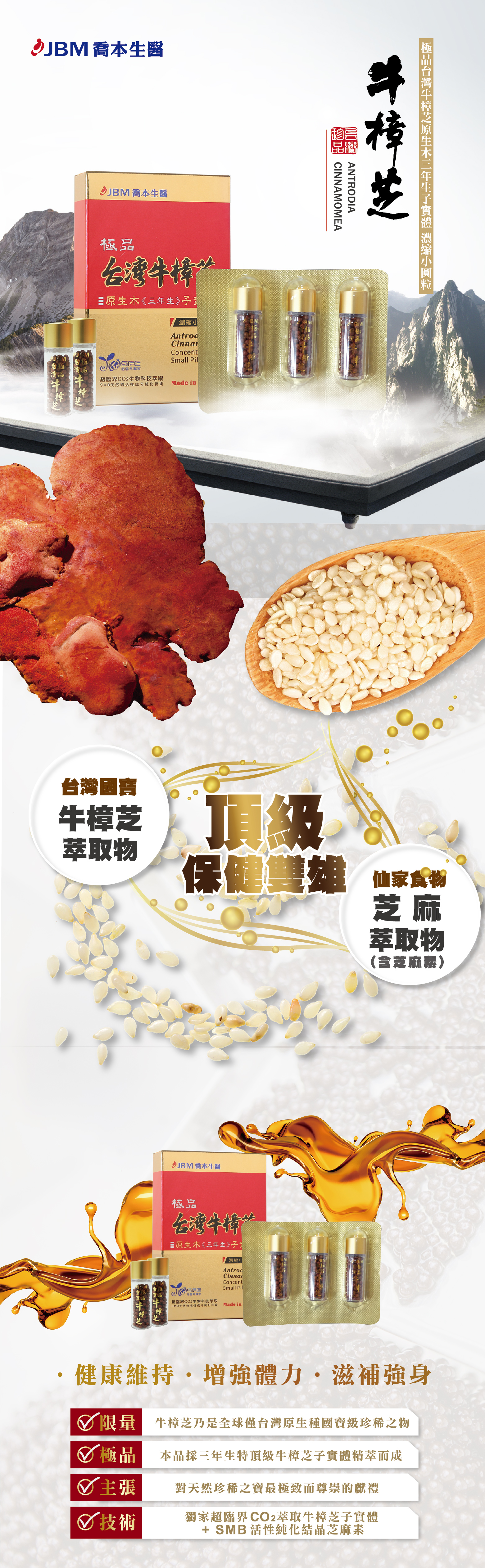 品名:JBM極品台灣牛樟芝原生木三年生子實體 濃縮小圓粒